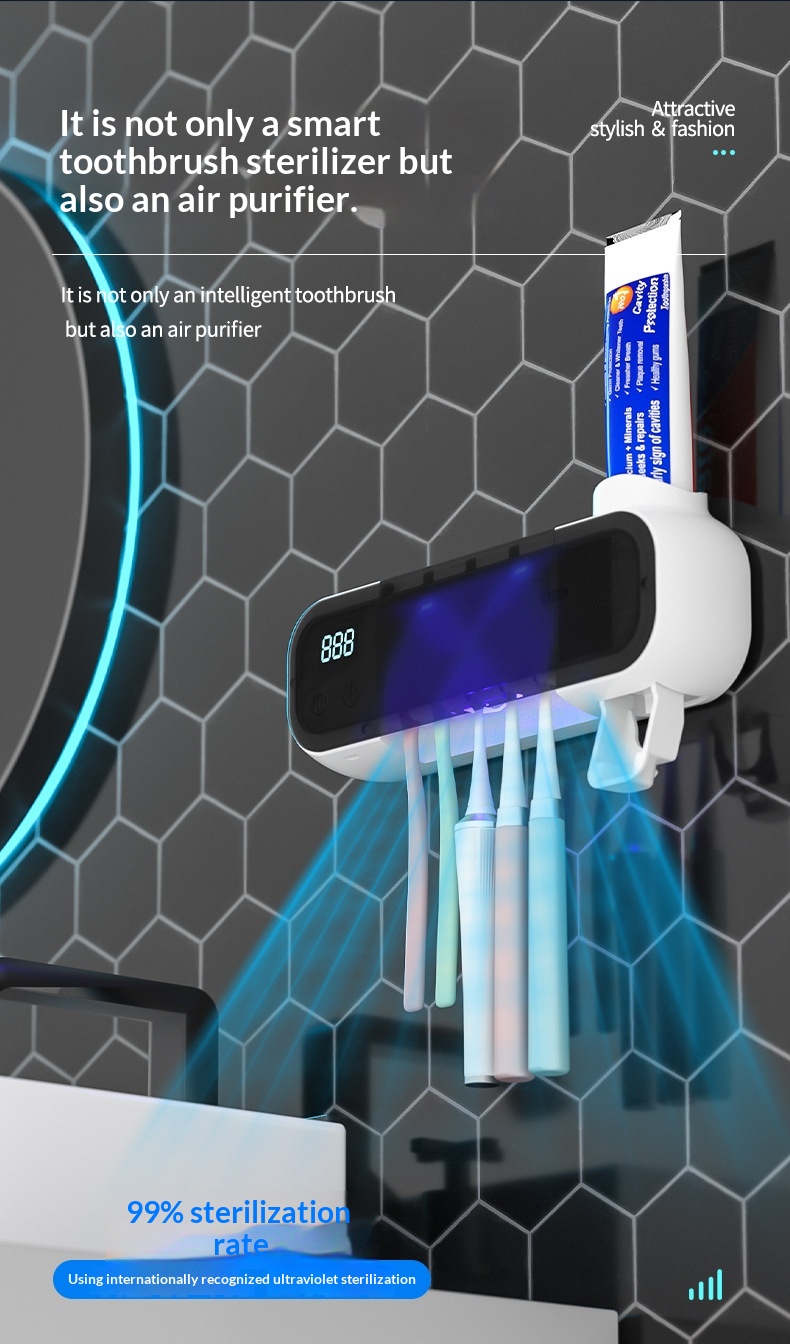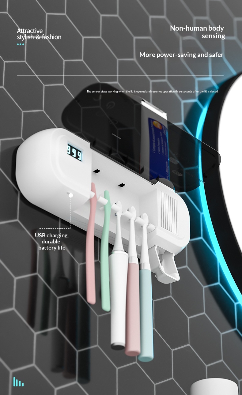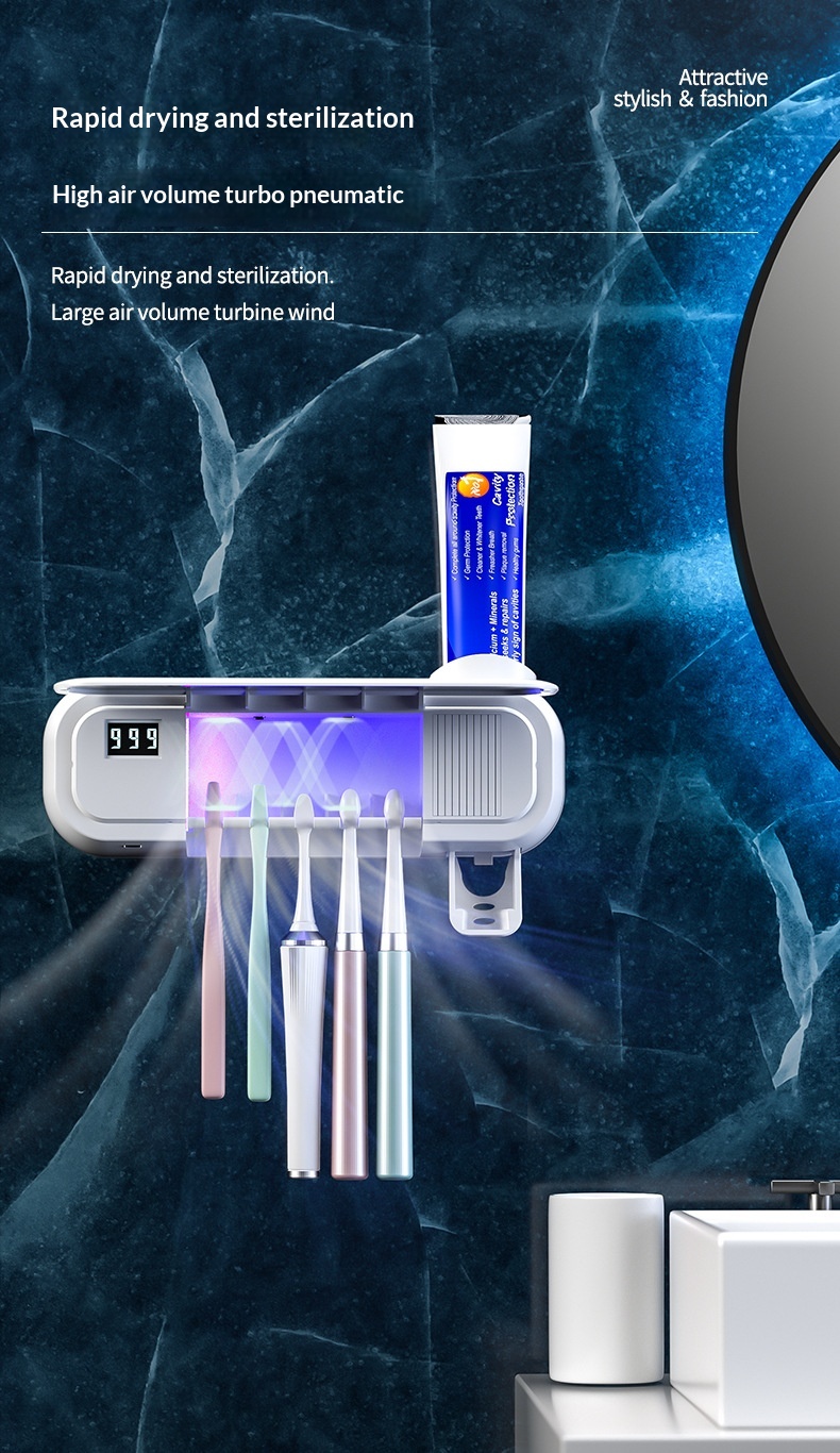 Product information: Power Supply: USB Colors: White, Pink, Green Specifications: Style 1: UV sterilization function; Style 2: UV sterilization and air-drying function Installation Method: Wall-mounted Material: Food-grade eco-friendly silicone + ABS Dimensions: 230 x 80 x 55 mm Battery Model: 18650 lithium battery Battery Capacity: 1200 mAh