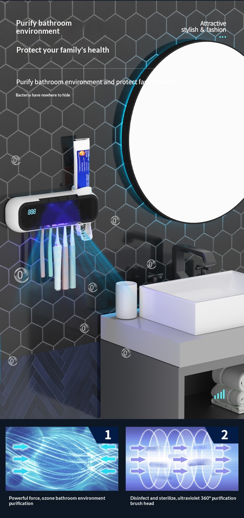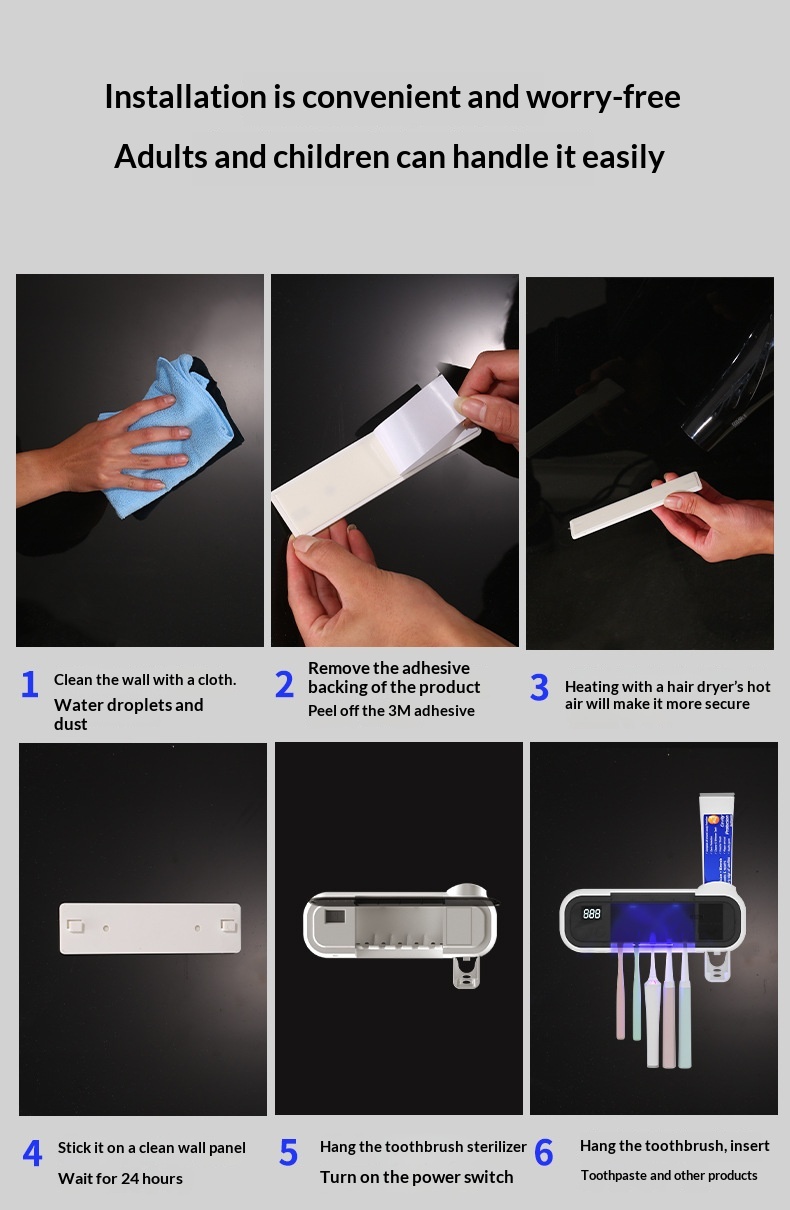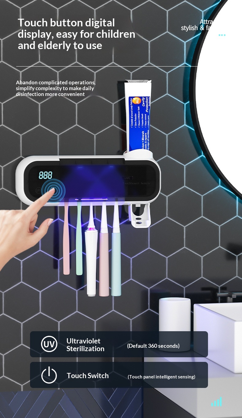 Product information: Power Supply: USB Colors: White, Pink, Green Specifications: Style 1: UV sterilization function; Style 2: UV sterilization and air-drying function Installation Method: Wall-mounted Material: Food-grade eco-friendly silicone + ABS Dimensions: 230 x 80 x 55 mm Battery Model: 18650 lithium battery Battery Capacity: 1200 mAh